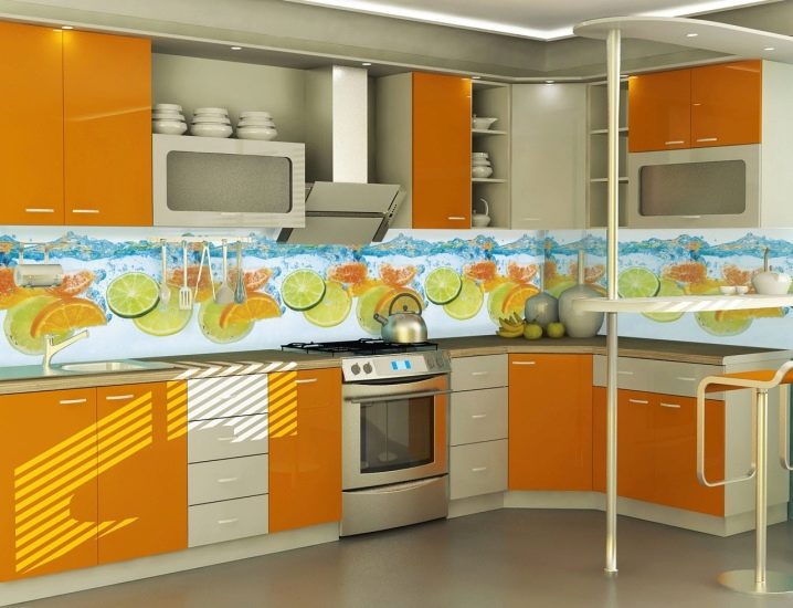 If you do not have enough money to buy elite European materials, you can use their cheaper counterparts. Such a finish made of MDF, chipboard, plastic perfectly imitates wood species, natural stone, creates amazing stained glass windows, the effect of broken stained glass, etc. When designing an apron, it is important to understand what role it will play in the kitchen interior. Sometimes it can be a great backdrop for a kitchen set or vice versa. In this area, you can place a 3D volumetric photo print, visually expanding the working space, giving the plot the interior of the kitchen.