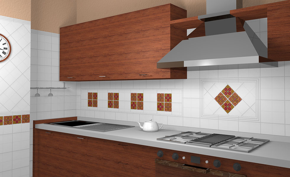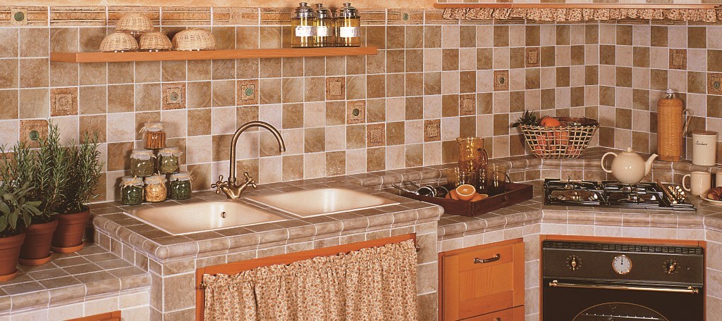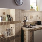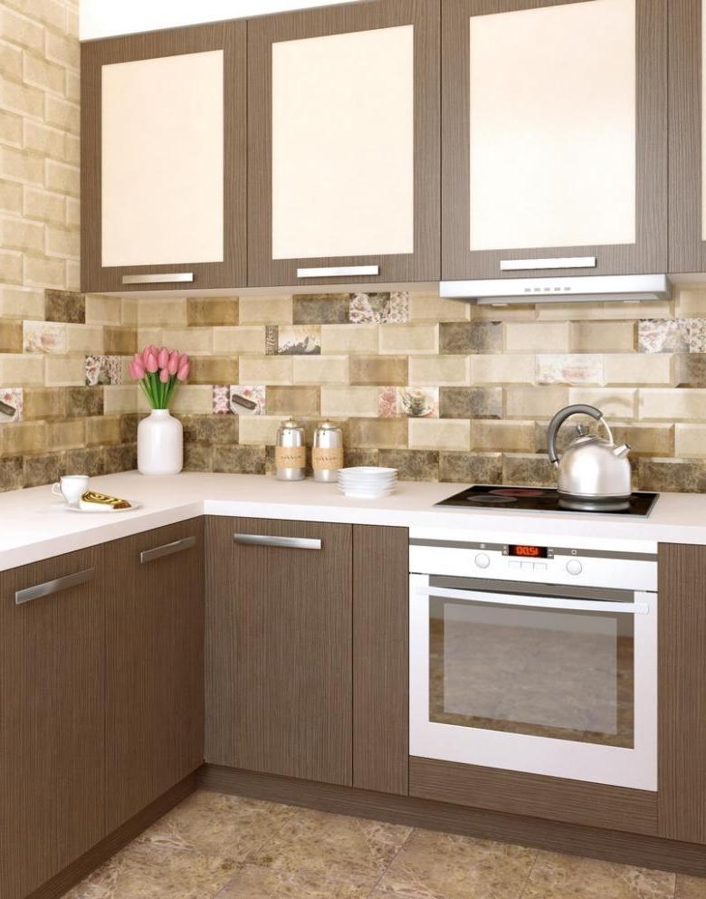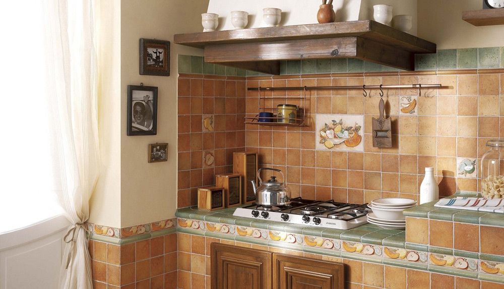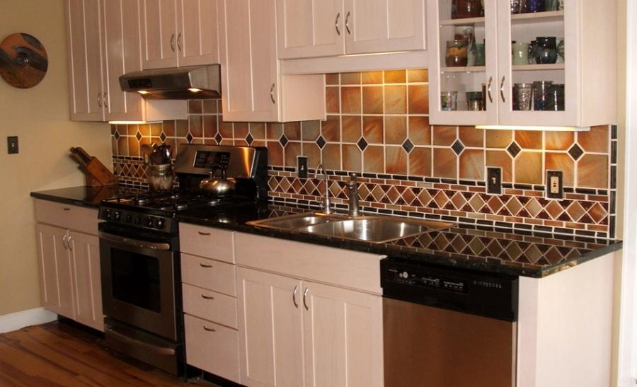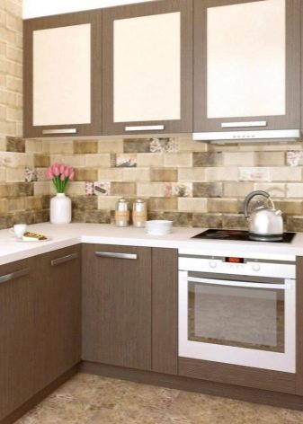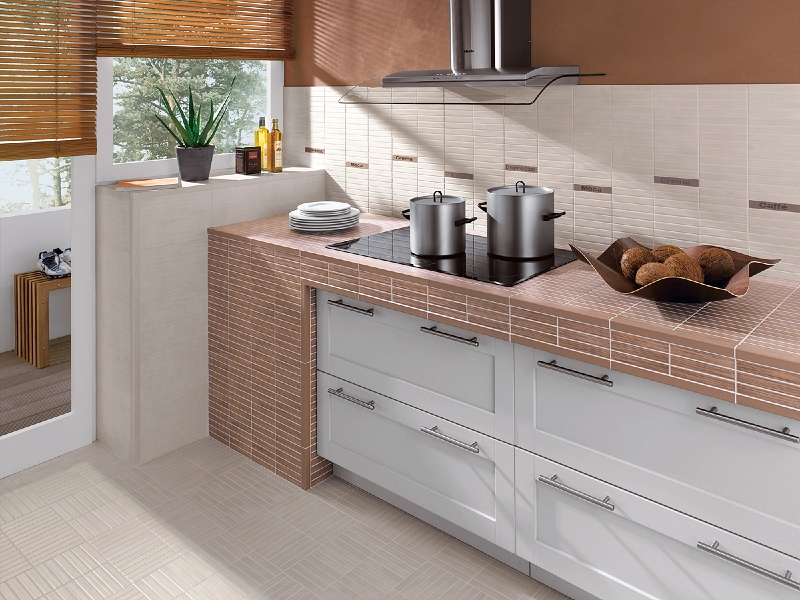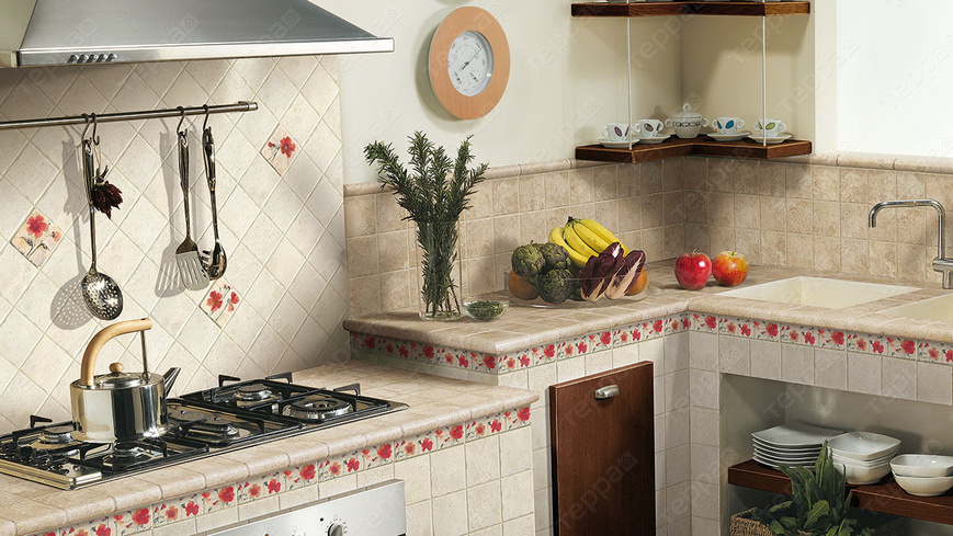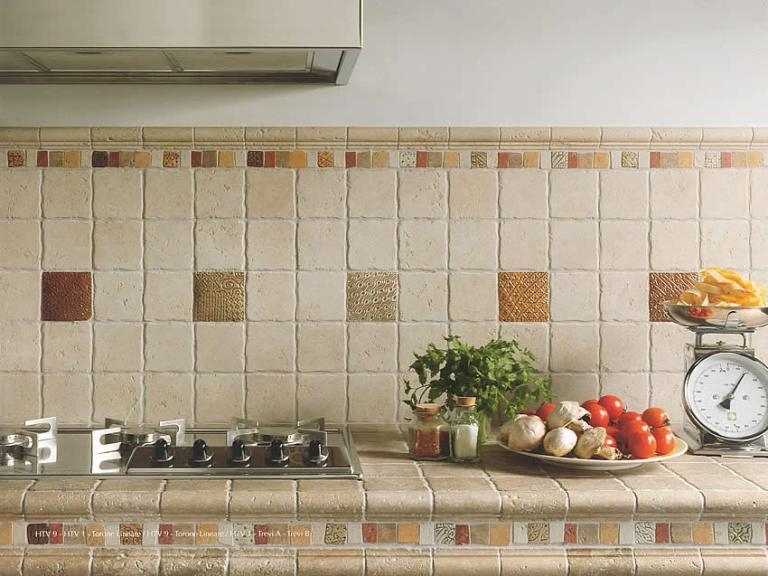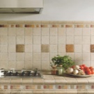 Begin laying the top from the corner. The mortar is applied on both interlocking surfaces - on the tile itself, and on the kitchen wall. If the last tile in the row does not fit, you can cut it with a tile cutter or saw it off with a grinder.
