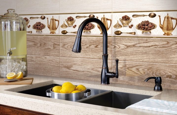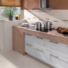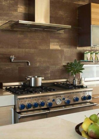Modern technologies make it possible to repeat the pattern of a tree of various species on a ceramic-granite slab - noble oak, modest birch, elegant larch, etc.In this case, not only the image is transmitted, but also the texture of the tree itself with all the roughness and irregularities. This allows you to use the material for finishing not only the kitchen apron, but if desired, and the availability of funds and all the other walls of the kitchen and other public places.