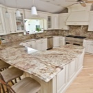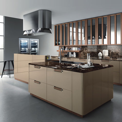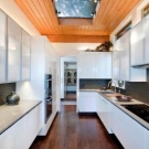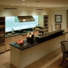 In this case, the walls are necessarily equipped with wall cabinets, there is also a worktop surface under them, which is why a kitchen apron is also needed. In the case when kitchen zoning occurs when using multi-level surfaces, kitchen apron trim elements can beautify those few centimeters that create a height difference. Reviews of owners of such kitchens confirm that the material ideally suited for decorating an apron in an “island” kitchen is an artificial stone, from which it is desirable to also make worktops and sinks.