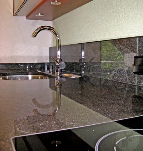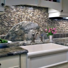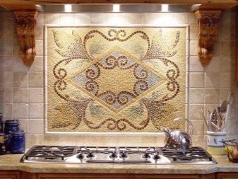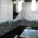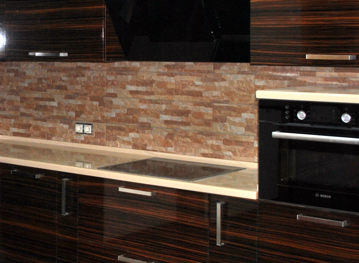 Stone tiles can be in the form of sheets, mosaic (2, 3x2, 3 cm) or tiles (10x10cm). Naturally, the stone is a natural material, very resistant and durable. Its installation requires special knowledge and skills and is only for professionals. The most significant disadvantage of such material is its considerable cost and the fact that it is difficult to update such an apron.
