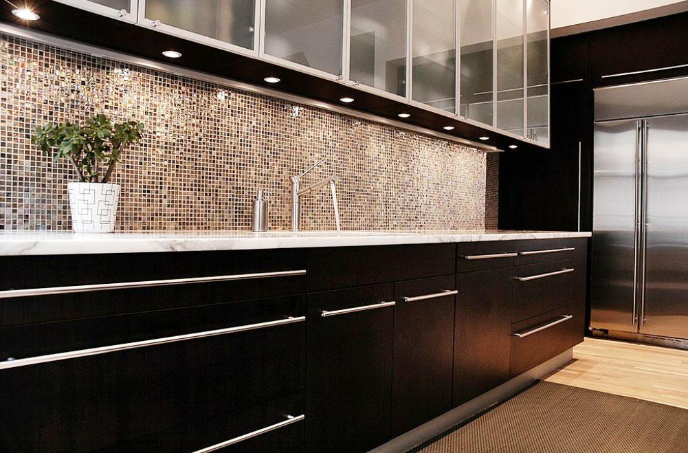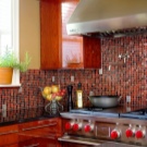 Kitchen apron is usually called the wall surface between the upper and lower cabinets, behind the sink or above the worktop. With the help of a kitchen apron it is possible to deliver a magnificent finishing touch to the design of the kitchen. Practically any material can be installed in this area, because it is not exposed to such a pressure of moisture as the walls in the bathroom, or strong pressure, like floor tiles.