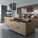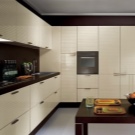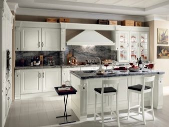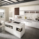 A distinctive feature of such an exclusive version of the kitchen, as the kitchen - the island, is the work surface, placed in the center of the room in the form of a table. Sometimes the sink and stove are located on this “island” site. Usually it is combined with a dining area to make full use of the space. Such a design is possible only in fairly spacious kitchens, while several people can simultaneously be engaged in cooking.