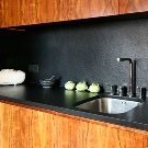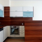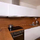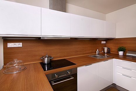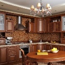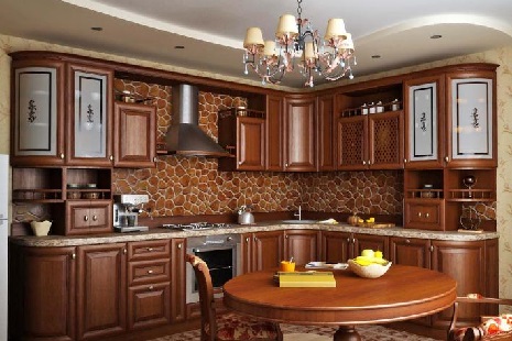 Regardless of what material the table top is made, arranging a kitchen apron made of natural wood will create a real homely atmosphere in the kitchen. In the style decision such material will approach the kitchen in the style of “country”, “Provence”, or in the classical style. The board can be both natural and veneered.
