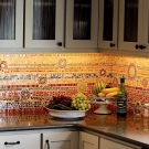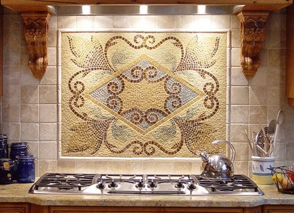 Mosaic is usually used in the arrangement of kitchens that have an attractive and unique look. Thanks to the use of various color schemes of the mosaic, it is possible with considerable ease to achieve a uniform and balanced design of the floor, cabinets, walls and all other kitchen utensils. Mosaic allows you to add creative decorative accents and even photos. Like tile, mosaic is made on the basis of clay, covered with glaze. It consists of small fragments measuring about 6x6 cm, resistant to temperature and humidity, and can last for many years.