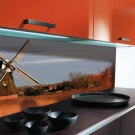 The surface of acrylic panels is durable, resistant to scratches, steam and moisture.The drawings applied to the skinali can be chosen virtually for any kitchen design. Images are distinguished by excellent color reproduction and clarity.