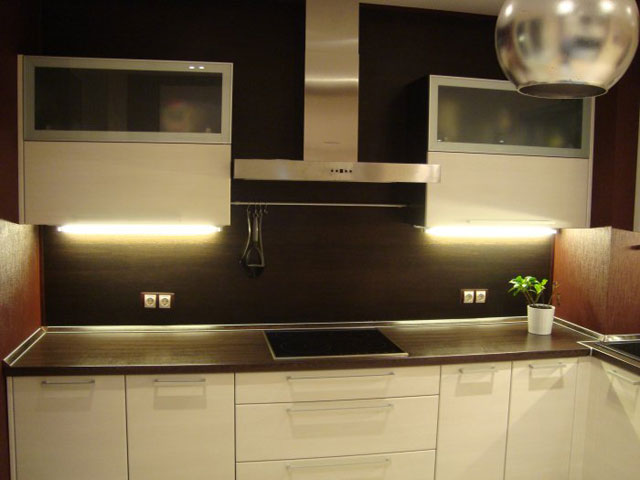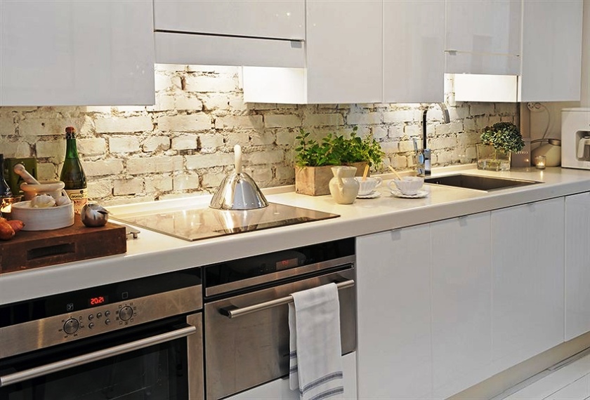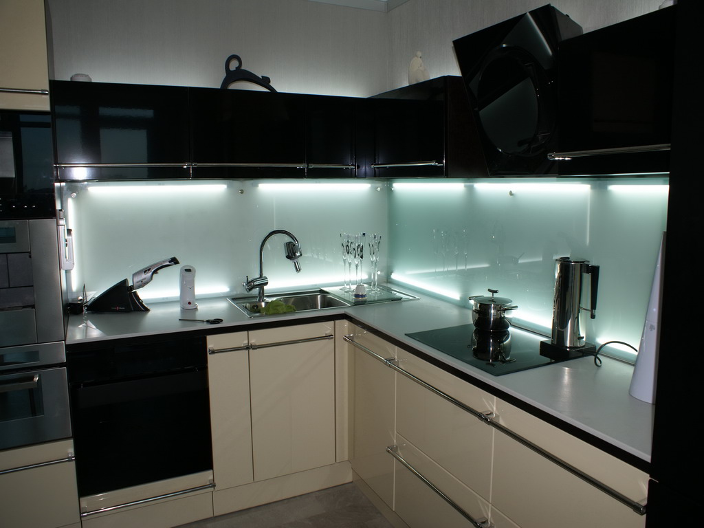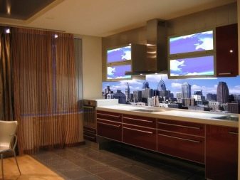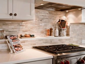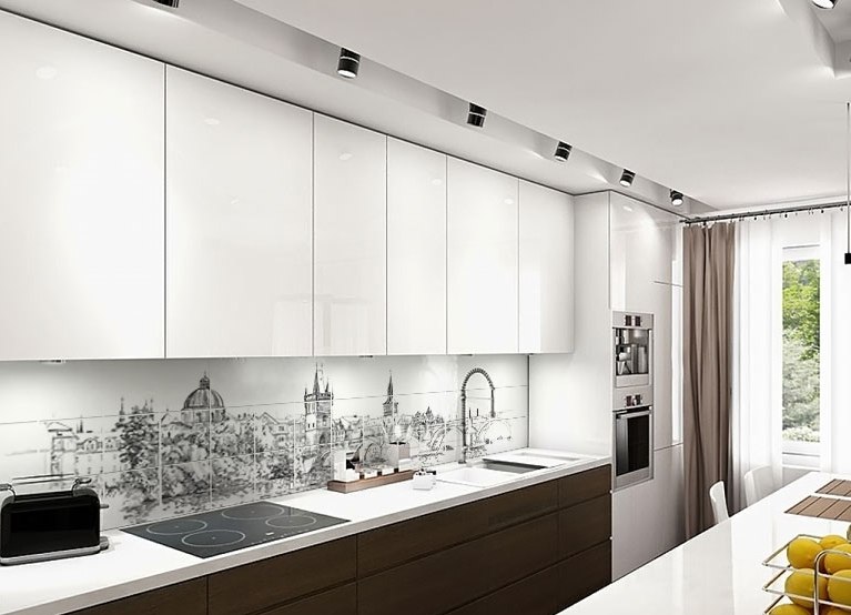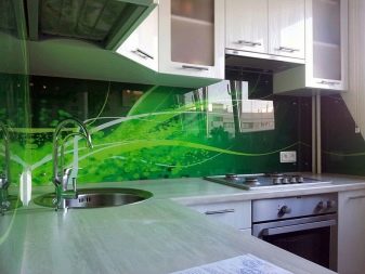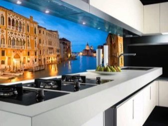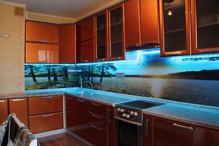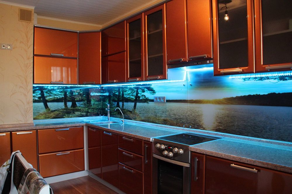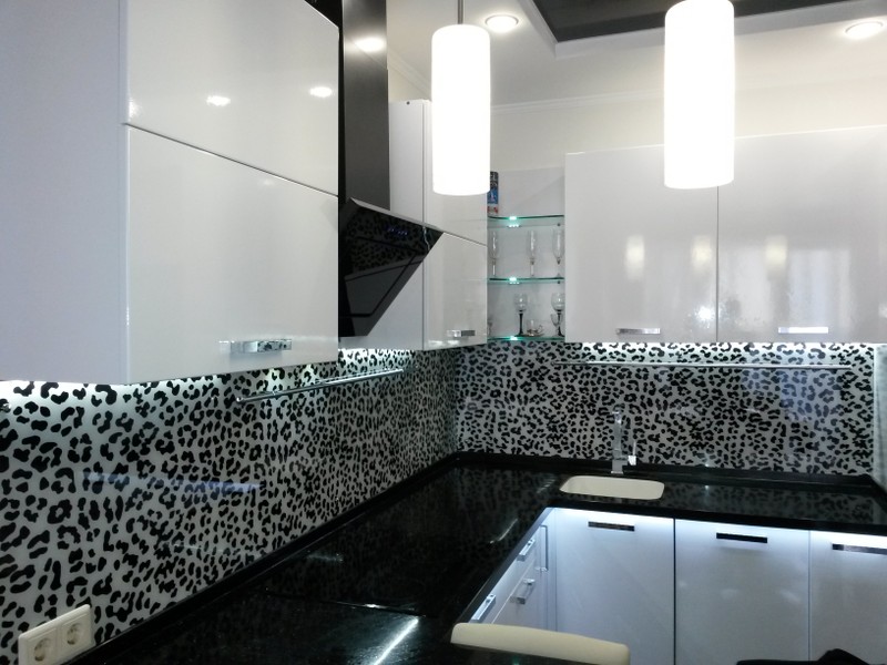 Such an option as an apron - a panel of glass, or, as it is often called, skinal, allows you to decorate the wall with elegant high-resolution photo-painting. On skinali can find images for all occasions and for people of any warehouse. The LED cord installed on such an apron will allow to make an expressive accent.