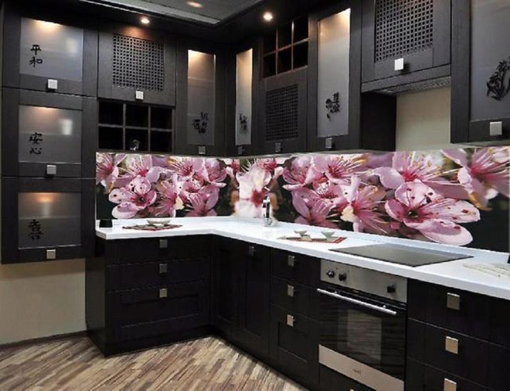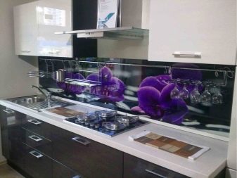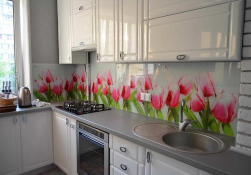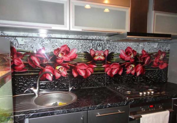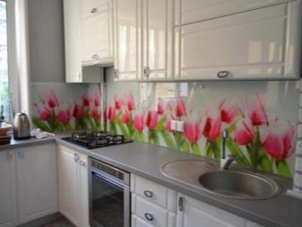 Romantic girls will prefer kitchen screens with daisies, gerberas, poppies, tulips; Also on these skinali sakura or lilies will look great. Proponents of "techno" can find a stylish view of Manhattan, and for adherents of the classics, non-standard art abstractions or paintings in the style of "modern" are created.