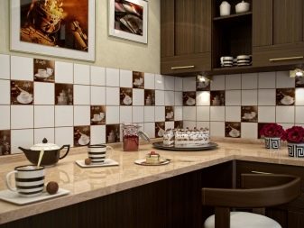 Successfully decorate the working wall can become popular in recent years aprons. In the event that the owners are not satisfied with the finished options, you can always order sketches and print on an individual project.