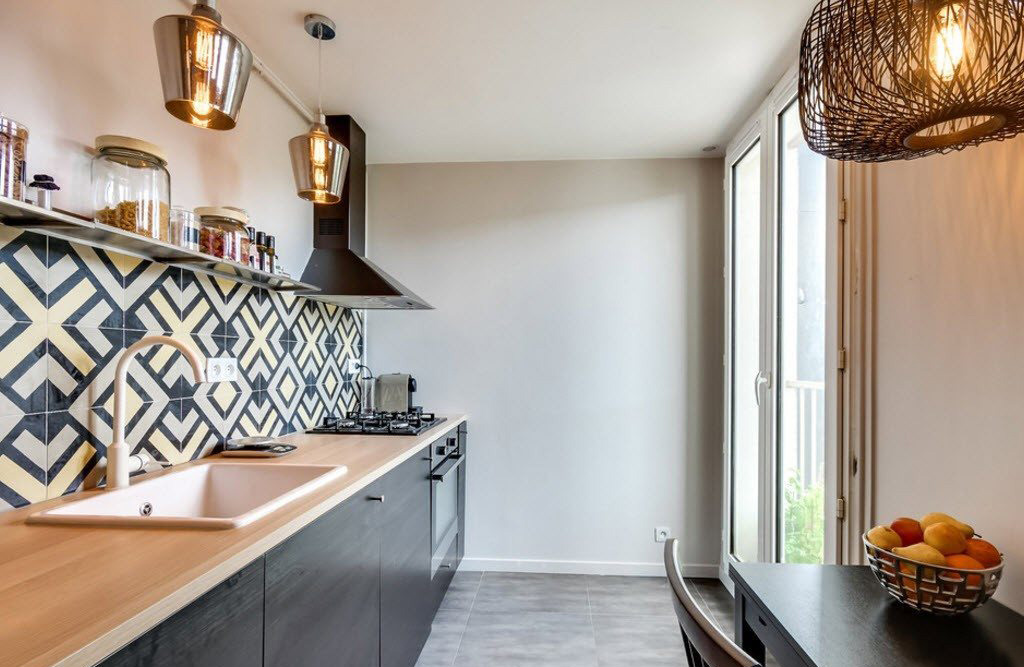 Ceramic tiles are available in industrial and manual production as well as in a wide range of colors, sizes and styles. It is suitable for all kitchen designs, from modern style to "country", and can be easily combined with other materials, such as stone. Very attractive looks tile "pig", stylized as a brick wall.
