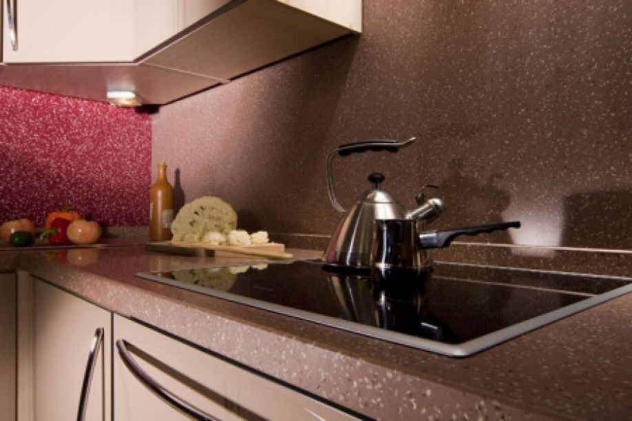 Artificial stone is a composite of mineral filler, pigments and acrylic resin. Its main advantage is a dense surface, durable in operation. It does not absorb moisture, prevents the growth of bacteria and fungi. Countertops made of artificial stone have a low thermal conductivity, and they are pleasant to the touch. Wall panels of this material look spectacular and expensive.