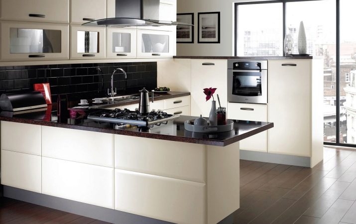 In small kitchens, for example, in “Khrushchev”, where the working surface is often increased by equipping the tabletop with a window sill, it is imperative to “stretch” the kitchen apron under and around the window sill. Thus, the kitchen space will be decorated more harmoniously.