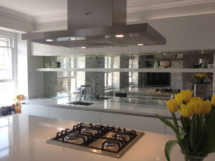For example, an unusual innovative version of the apron - with a mirror TV, will not be very convenient for cleaning.