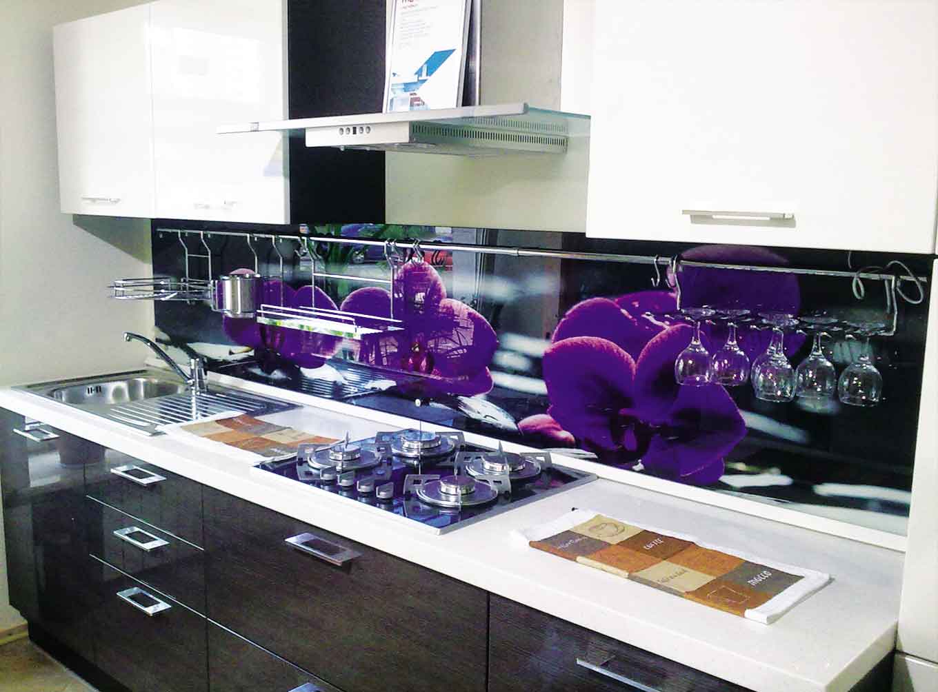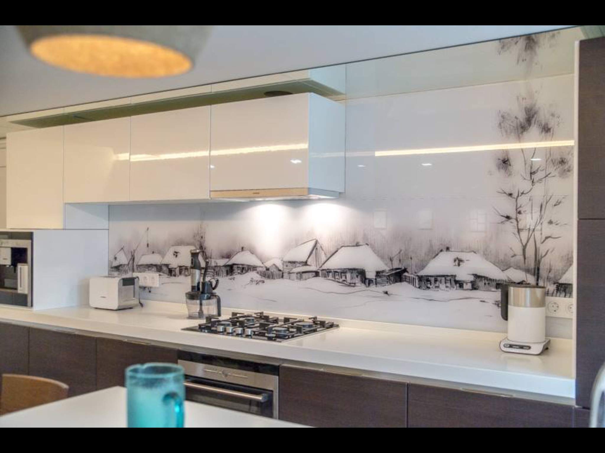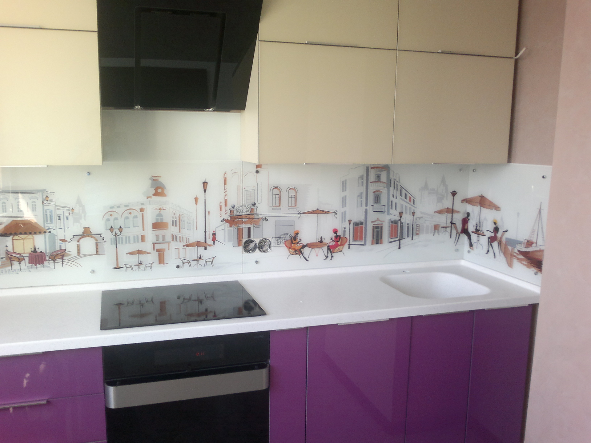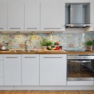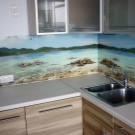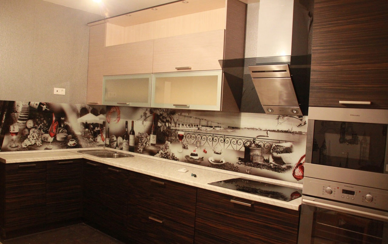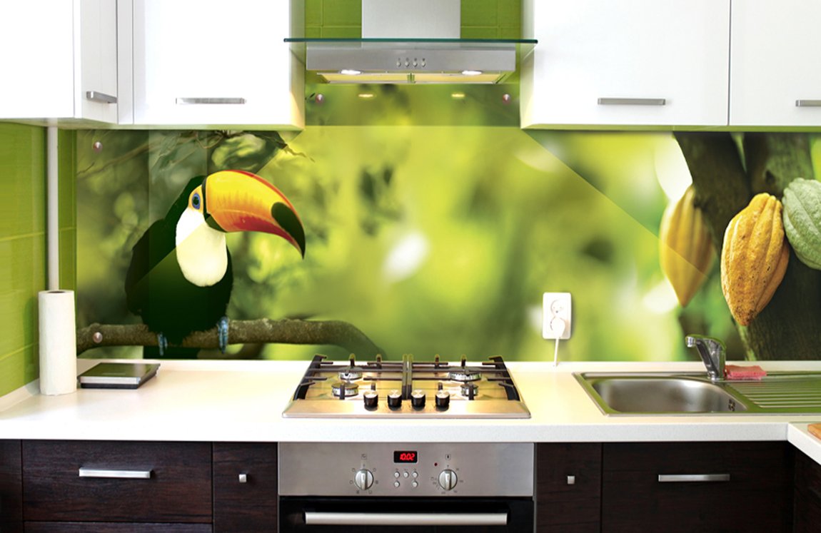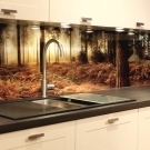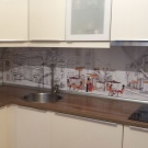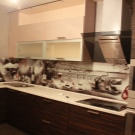 The photo printing can be made under the individual order. Such a solution will let your imagination roam and create a real work of art in the kitchen. To date, many companies offer this service. You can choose any image or photo as a picture. By giving preference to photo printing, you can complement the entire kitchen interior with similar prints.