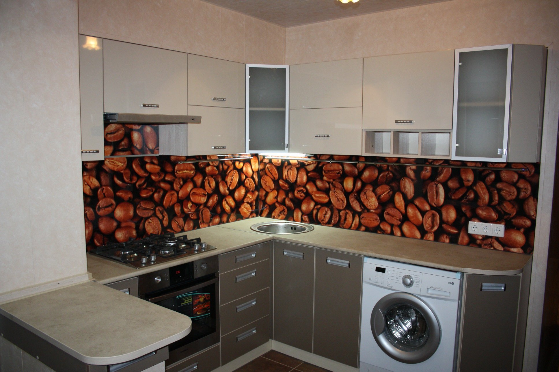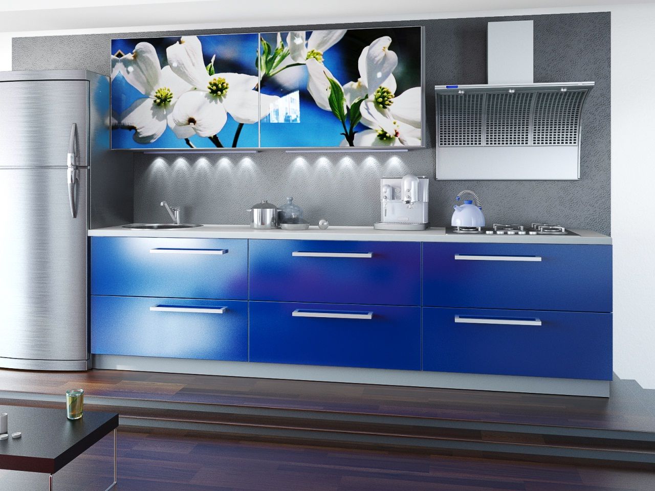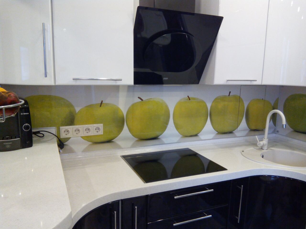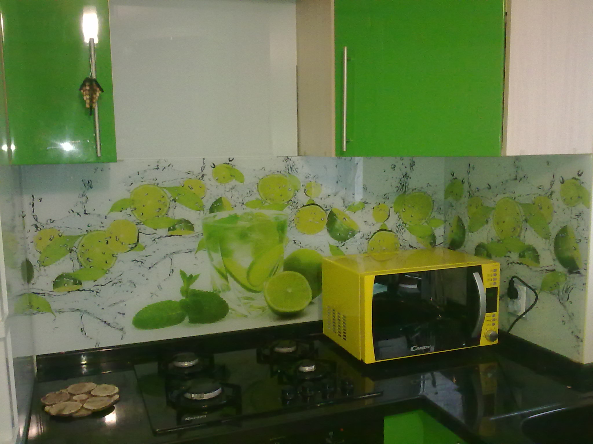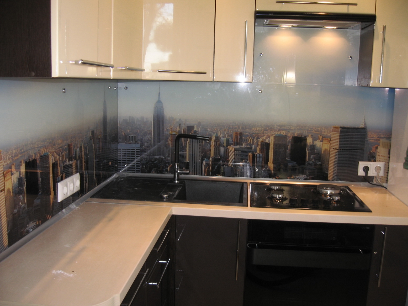 The photo printing can be made under the individual order. Such a solution will let your imagination roam and create a real work of art in the kitchen. To date, many companies offer this service. You can choose any image or photo as a picture. By giving preference to photo printing, you can complement the entire kitchen interior with similar prints.