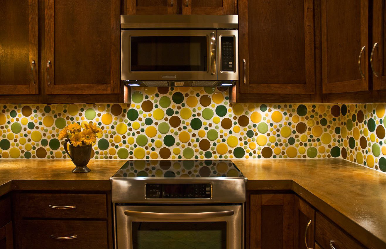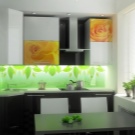 The opposite option - creating a contrast using the panel. So the apron will attract attention and emphasize the work area. If the kitchen is made in bright colors, then the apron should be pastel color (white, beige, gray and the like). If the overall color of the kitchen is more neutral, then choose a bright color apron. In the latter case, it is worth making a few more nuances in the same color. Such nuances can be curtains, napkins and other textiles.