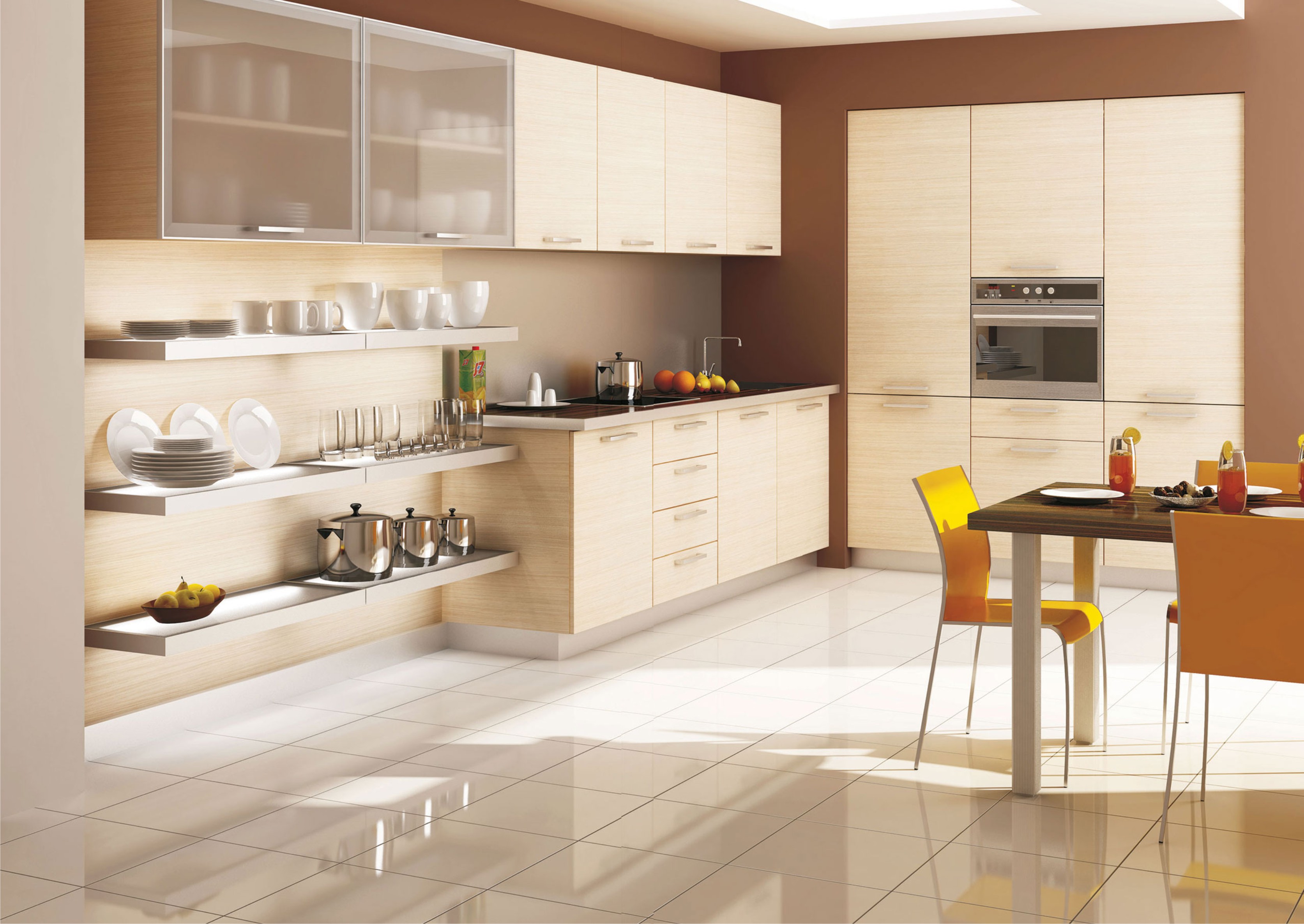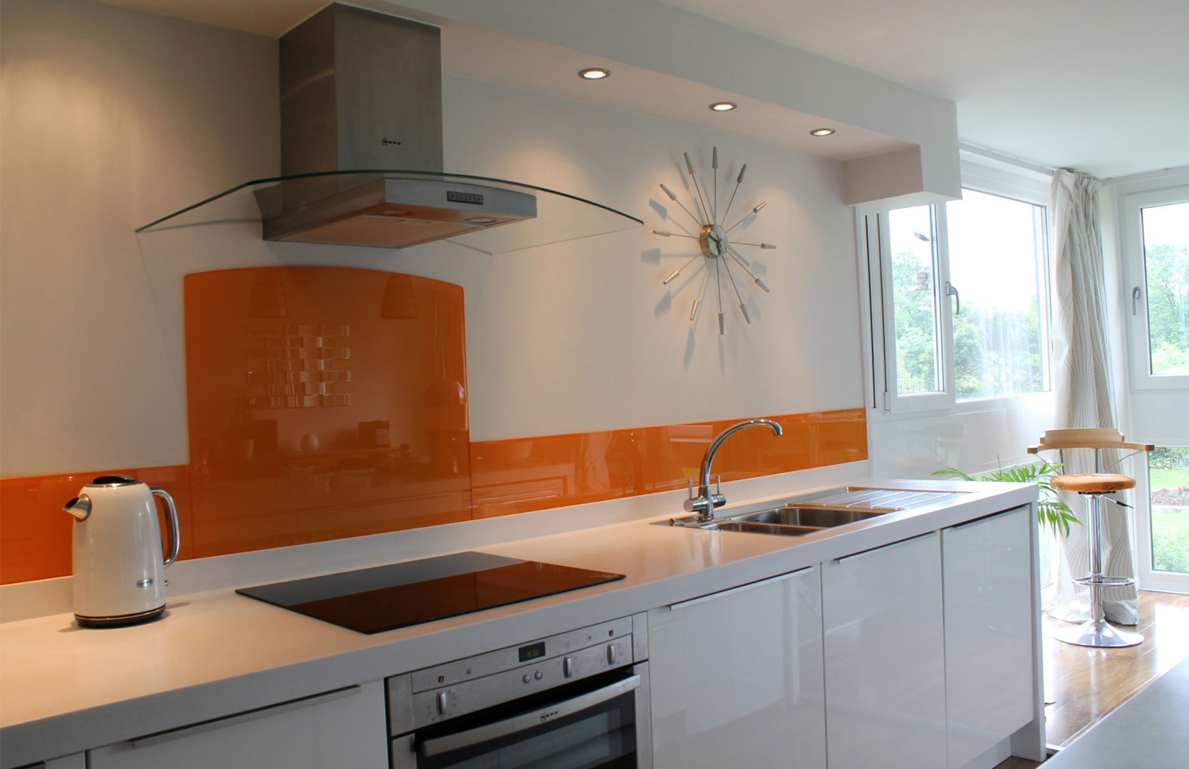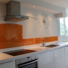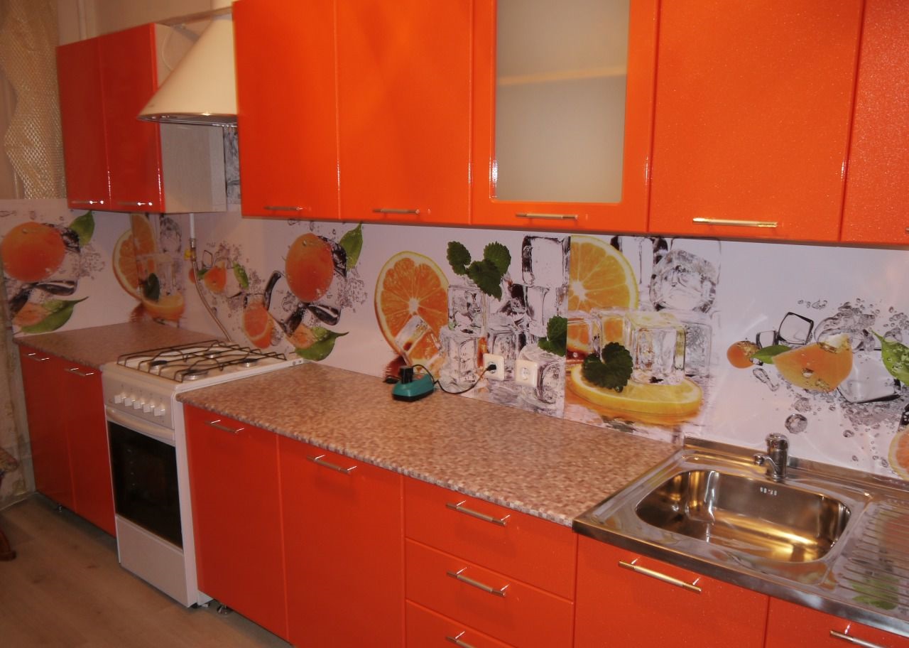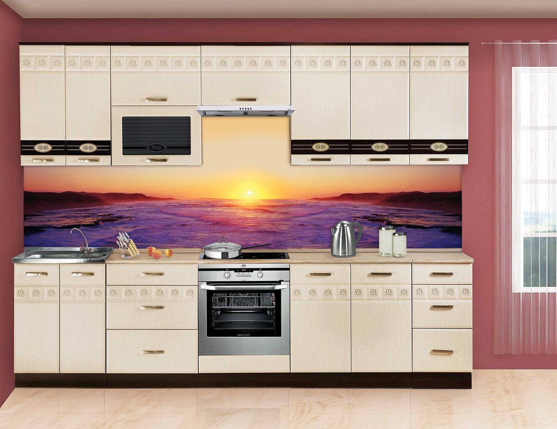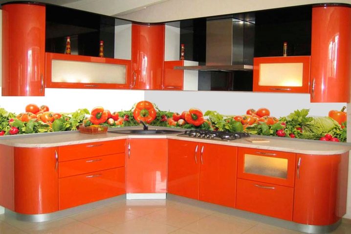 Look good in the kitchen landscapes, marine themes, natural motifs. Bolder owners must pay attention to abstractions. Look good panels orange. This shade will lift your spirits and add joy, improve your appetite.