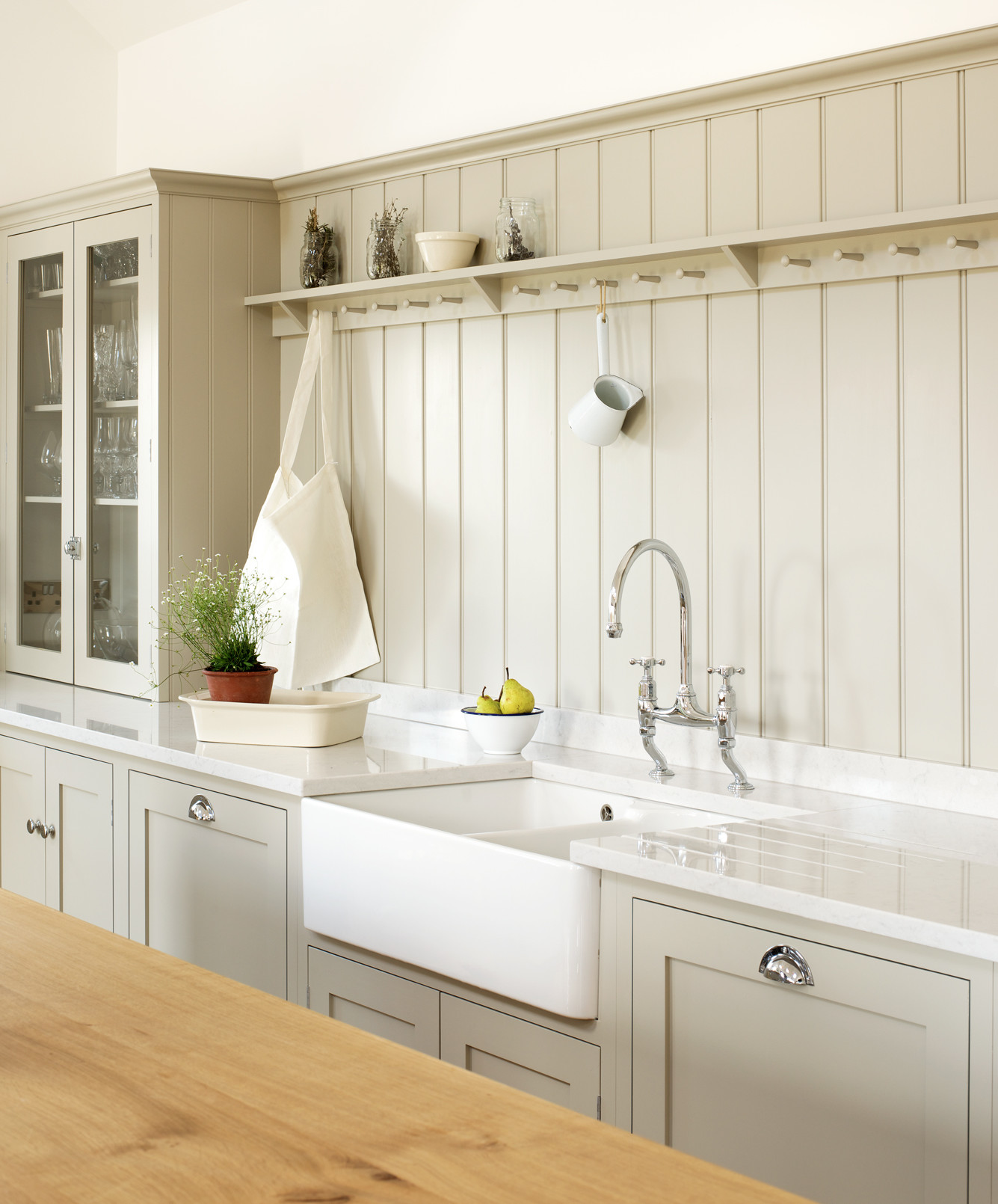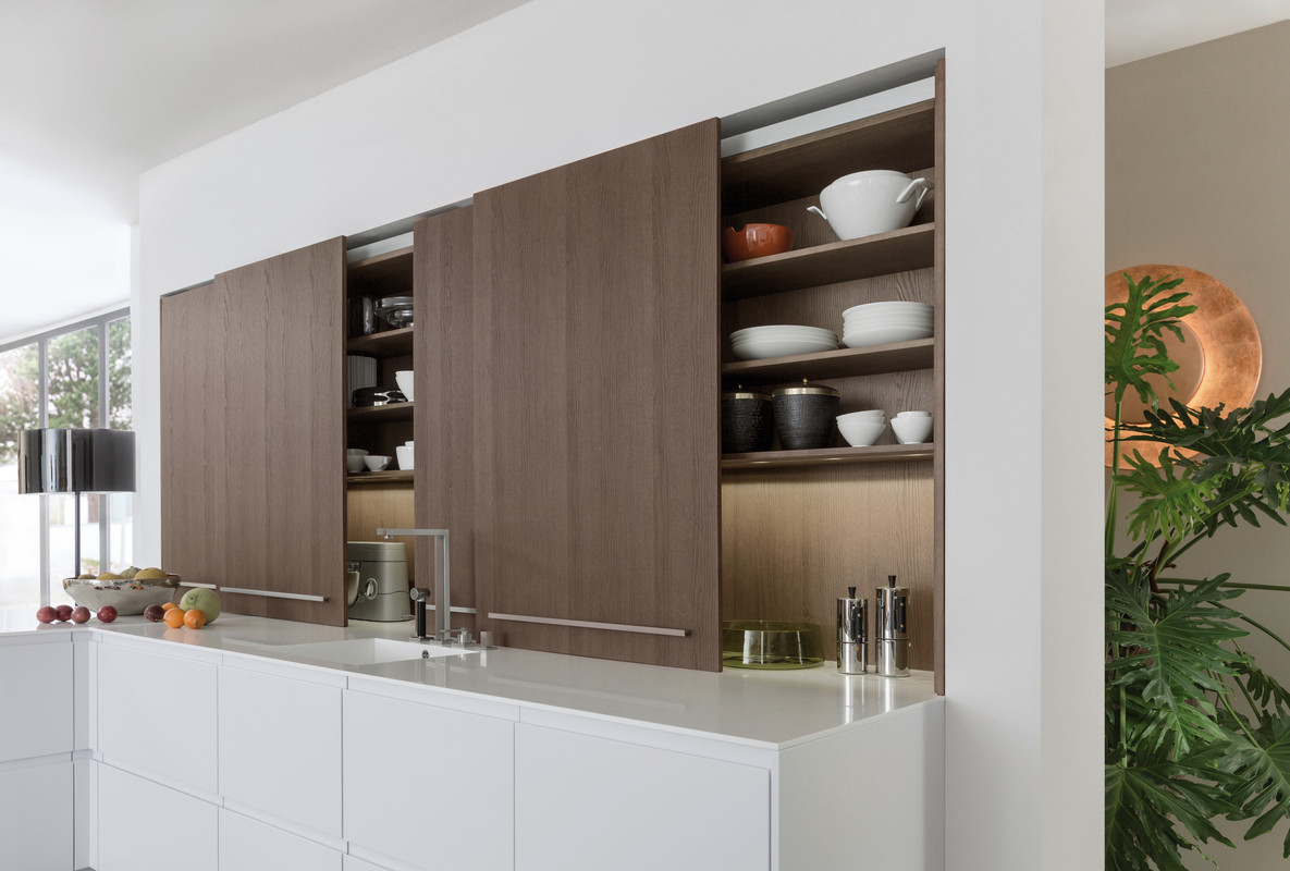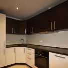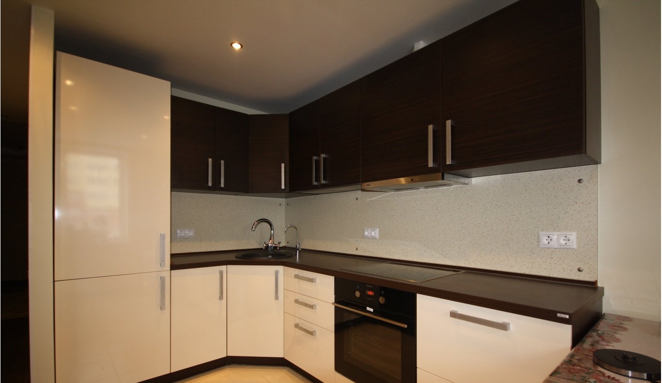 Now you should consider the distance between the lower and upper edge of the coating. If the doors of the upper cabinets are opened by the closers to the top, then the apron should be made low (45-55 cm). In standard kitchens, the height of the apron varies between 47-117 cm (45-115 cm from the worktop to the upper edge).