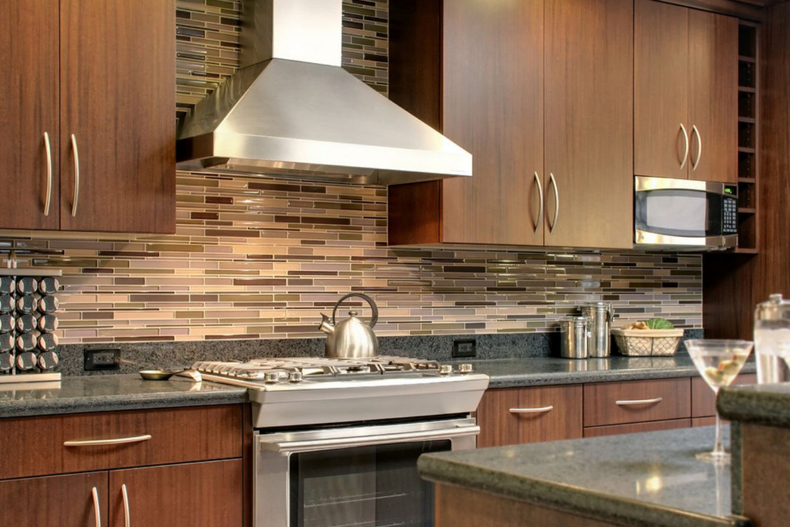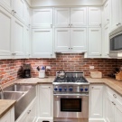 In the small-sized kitchen pick up a bright apron, it is able to visually expand the boundaries of the room. For a kitchen set in bright colors, pick up a dark apron and play on the contrast. To create a classic design, select panels with imitation bricks, wood or any other natural material. The patterned apron is more practical. On it insignificant pollution will be less noticeable.