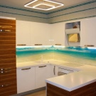 The most reliable and expensive example of plastic aprons is polycarbonate glass. It combines the reliability and durability of the metal and an attractive type of glass.3D printing on such panels looks especially elegant and attractive.