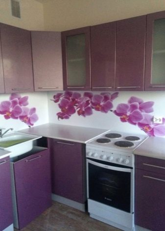The apron does not have to be made in one color. Increasingly, the hostess prefer panels with photo printing. You can buy finished products with typical patterns. The style of a brick and other expensive materials is popular.To imitate wood, it is better to choose PVC clapboard. Now many catalogs are full of aprons with flowers (usually orchids) and fruits (orange, apple, etc.).