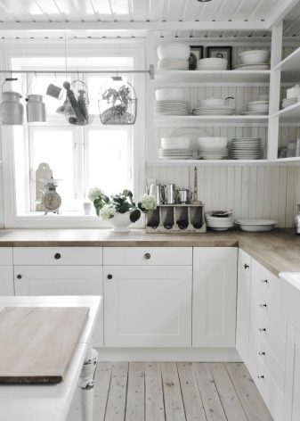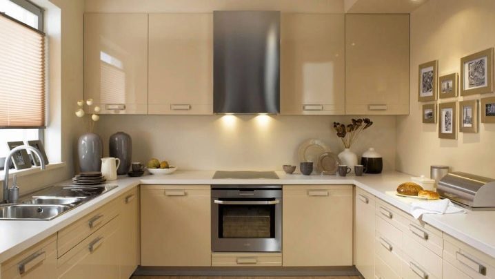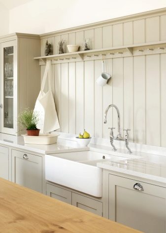 Standard colors are used companions. Green countertops are perfectly combined with yellow panels. Shades of blue are combined with gray tones. But browns are combined with beige shades. Remember that bright aprons visually expand the space and make the room more light.
