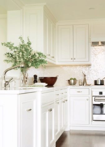 An apron in the same style with a headset should not be in the same color with it at all. It must be in harmony with countertops, appliances or furniture.The main thing that the apron was a logical continuation of the interior. In this case, the apron will not become a key element, but will only continue and support the overall style.