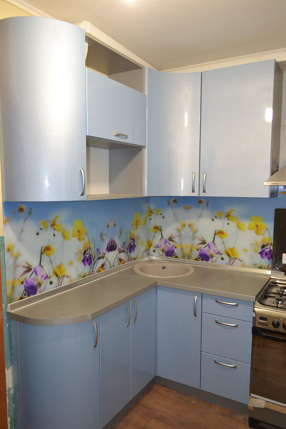 - First you need to decide on the size. Remember that the apron should be 1-3 cm below the table tops. But there are no special requirements for height. You can install an apron that will not reach the top of the headset. In this case, you should decorate the place of transition. The main thing that the working wall was protected from moisture and dirt.
