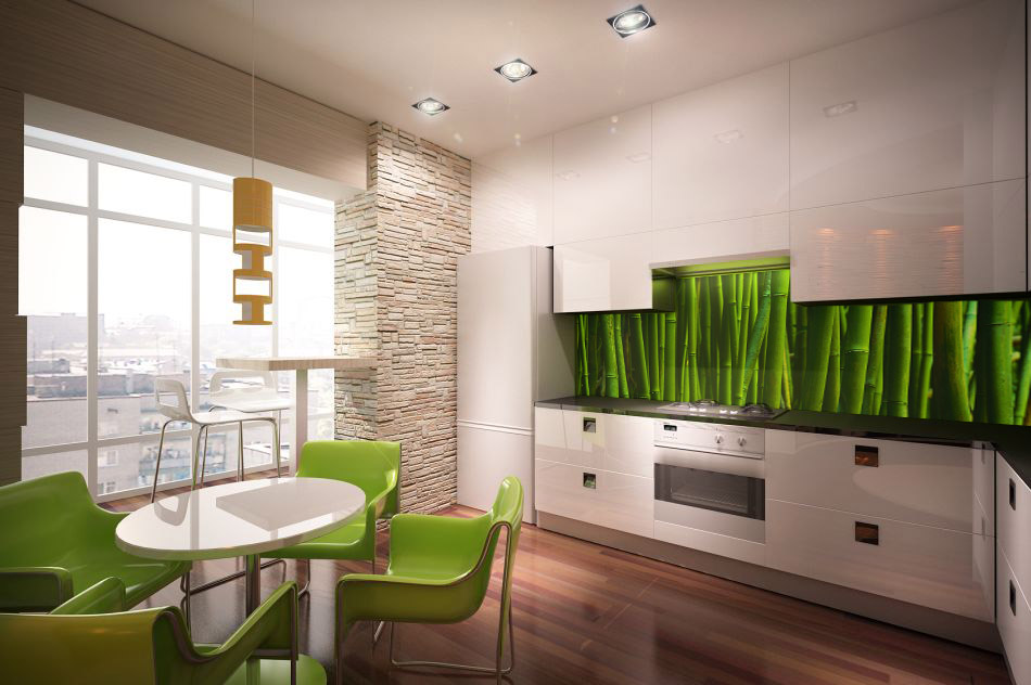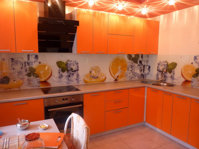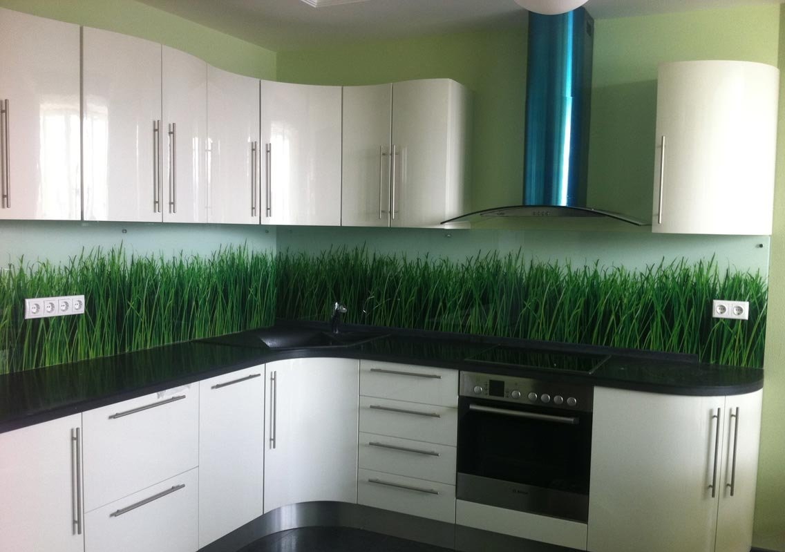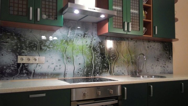 The production technology of glass panels allows you to create a suitable option for any interior to the kitchen of any area. Of course, you will not be able to make a glass apron with your own hands, but with the help of a designer and a wizard you can easily embody all your fantasies.