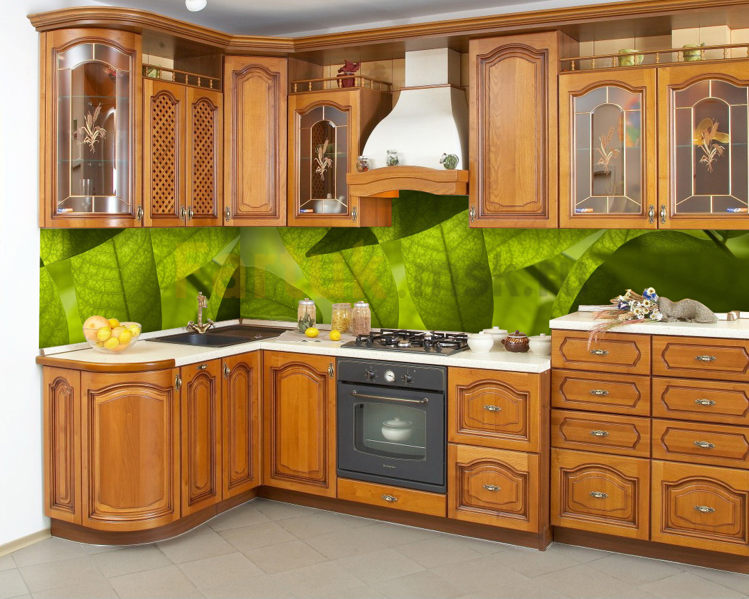 It is interesting to look at the panels with folk paintings - Zhostov elements, Khokhloma or Gzhel. They are perfect for creating an atmosphere in the kitchen in a rustic style.