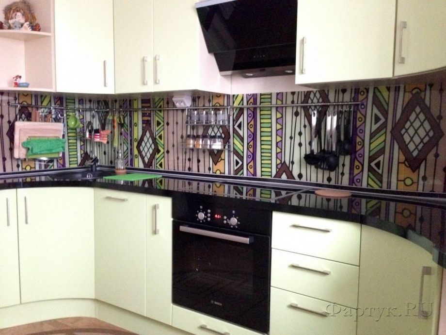- Remember that glass aprons - a thing durable enough. Typically, manufacturers give a guarantee of at least 10 years, that is, this coating can survive 1-2 repairs and not lose its spectacular appearance. Therefore, when choosing a drawing, consider also whether it will bother you in the near future.