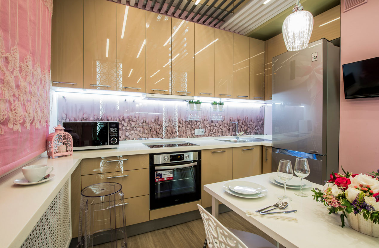 Kitchen sets are often chosen for appearance and budget, forgetting about such an important parameter as growth. Because the recommended height of some cabinets is more suitable for tall people, while others will be extremely uncomfortable. Therefore, the size of the apron and its position strongly depend on your individuality. But the set itself, its design and kitchen appliances can put an imprint on the measurements of the protective canvas. There are no trifles here, because we want to receive pleasure and pleasure from a new kitchen!