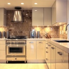 Initially, you need to think about the placement of electrical sockets, so that all the wiring can be hidden in the wall along with an apron. How to install an apron of ceramic tiles, knows almost everyone.The wall, where the apron is to be installed, is prepared by making special notches for more reliable adhesion, it is treated with a primer and the wall is laid out using tile adhesive. The thickness of the adhesive should not exceed 6 mm, otherwise the tile will fall off. Also, do not apply to the entire surface immediately, as it dries quickly, and the tile will not stick.