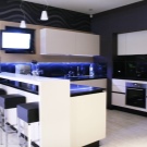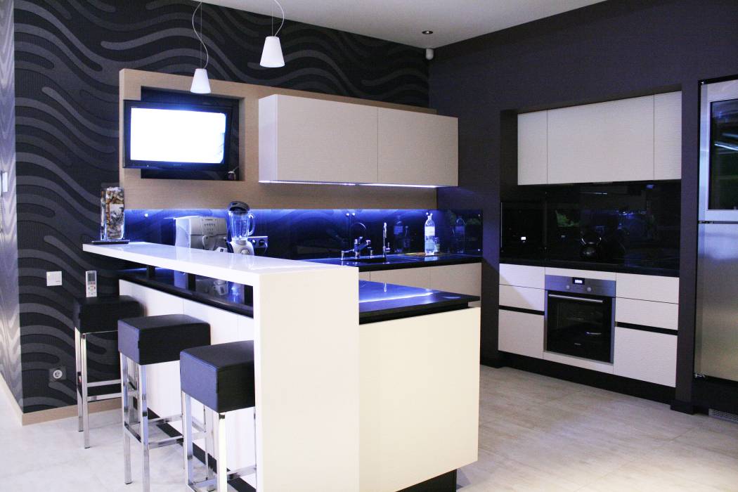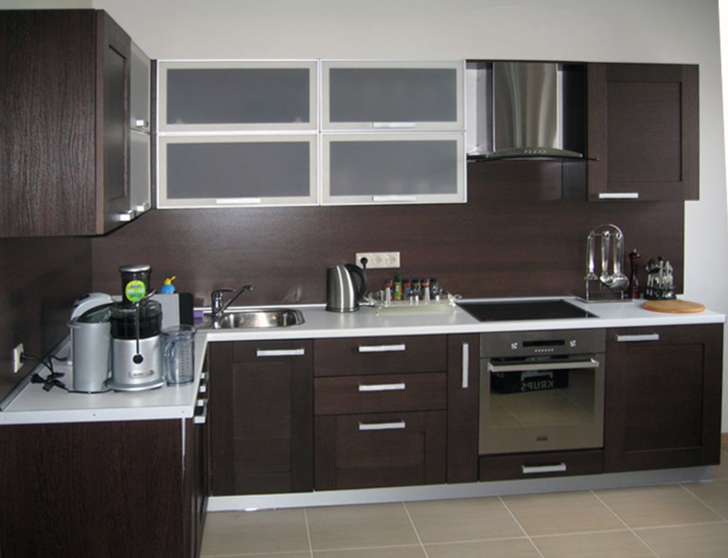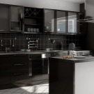 If you have a small kitchen, doing it completely in black is unlikely to be a sensible solution. She will look overly gloomy.Bright tabletops, bright wall, bright decors will help to avoid this impression.