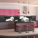 Highlighting or contrasting the design of the apron makes the design interesting, and in some cases even elegant. But the apron is an element of the working area of the kitchen, and besides the choice of color solution, you should think about the finishing material. It must be resistant to steam, water, high temperatures, well cleaned. Therefore, the material for the apron must be durable so that it lasts a long time and maintains a good appearance.
