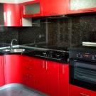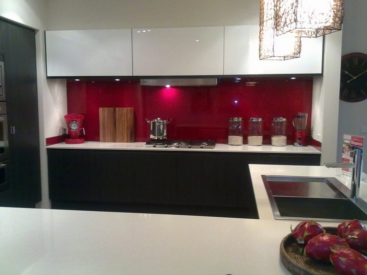 The choice of color apron for the red-black kitchen is wide enough. You can apply dark and light shades depending on the effect you are trying to create.