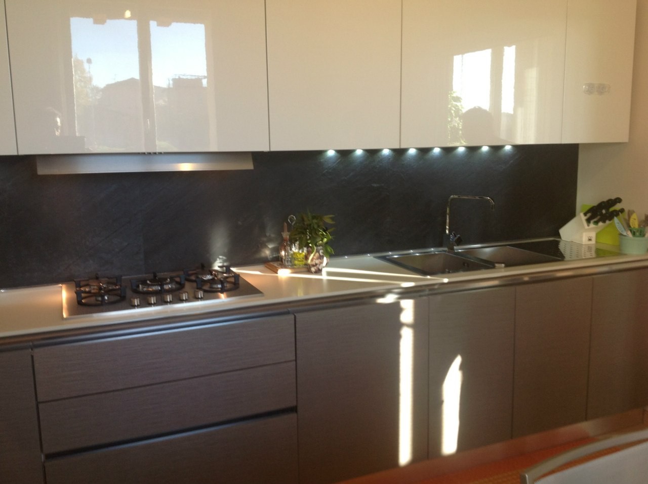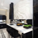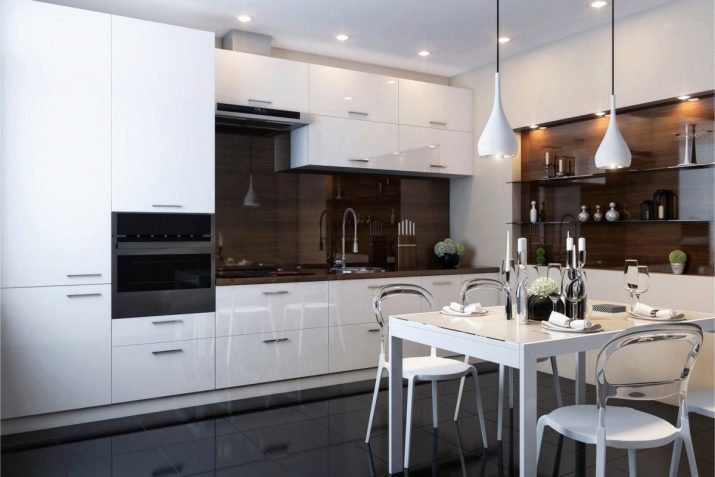 For the bright kitchen is not necessary to choose a bright apron. Choosing a contrasting color, you can get the effect of deep and volumetric space, revive the interior.