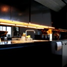 A red apron in contrast with a dark table top will fill the space with energy, create comfort.