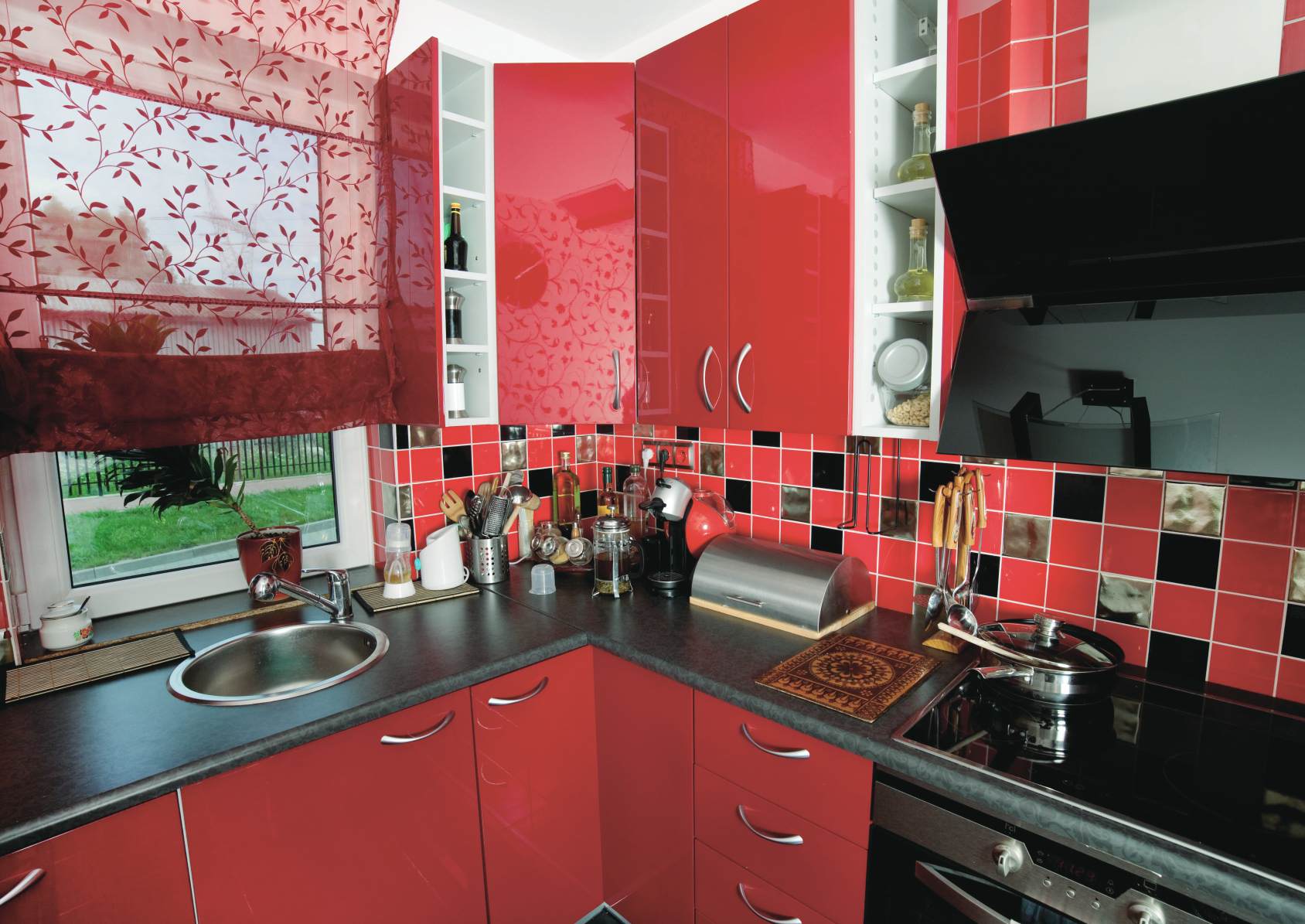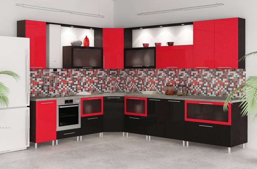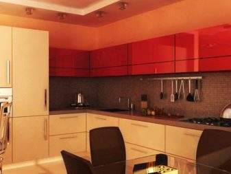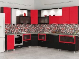 The alternation of red and black can follow in any proportions and order, depending on the chosen style and preferences of the owner. However, it is better that black prevails in the lower part of the kitchen. Red is a rather aggressive color, so you should not choose a bright scarlet shade, you can use cherry, carmine, crimson or another shade.