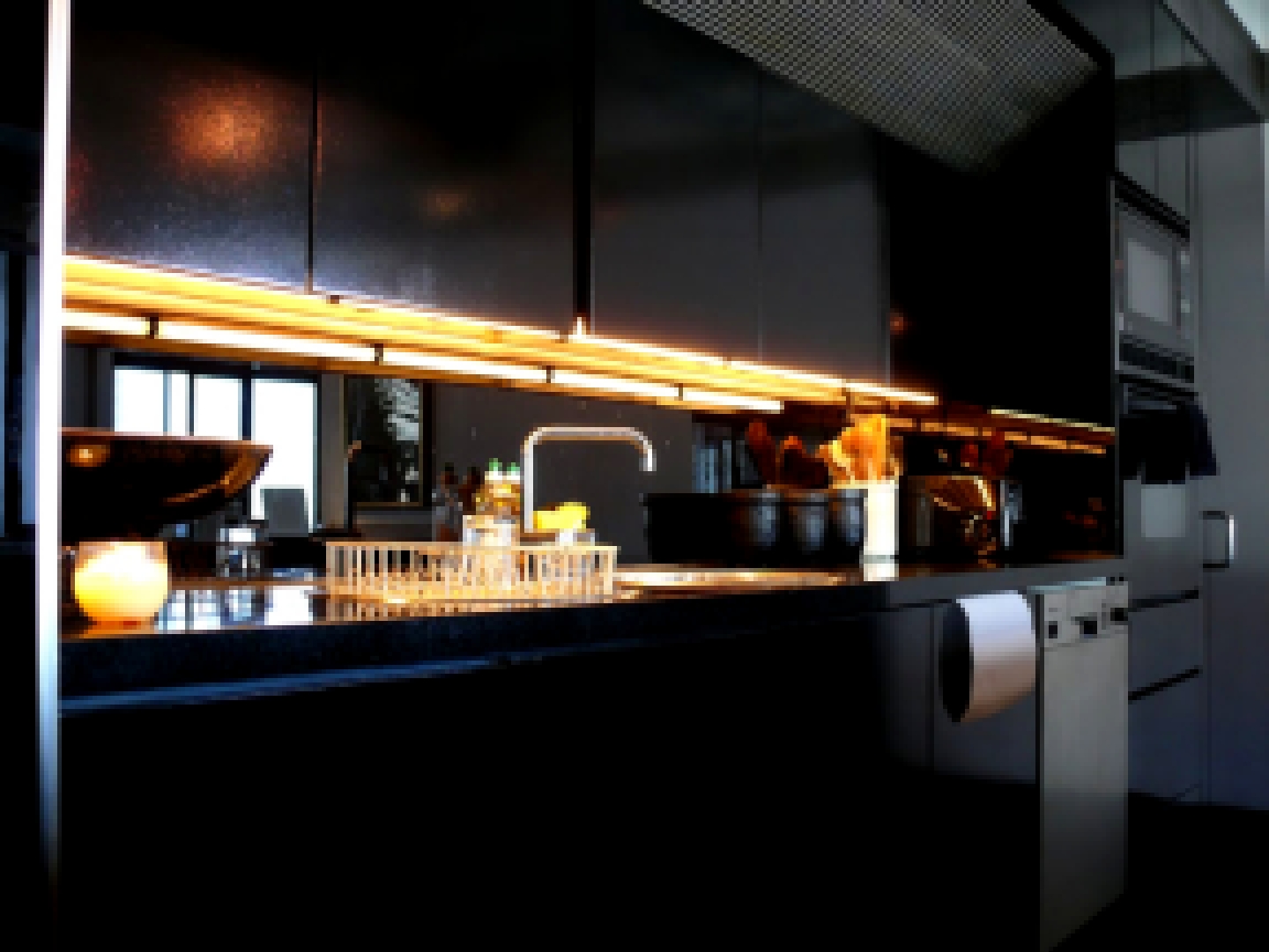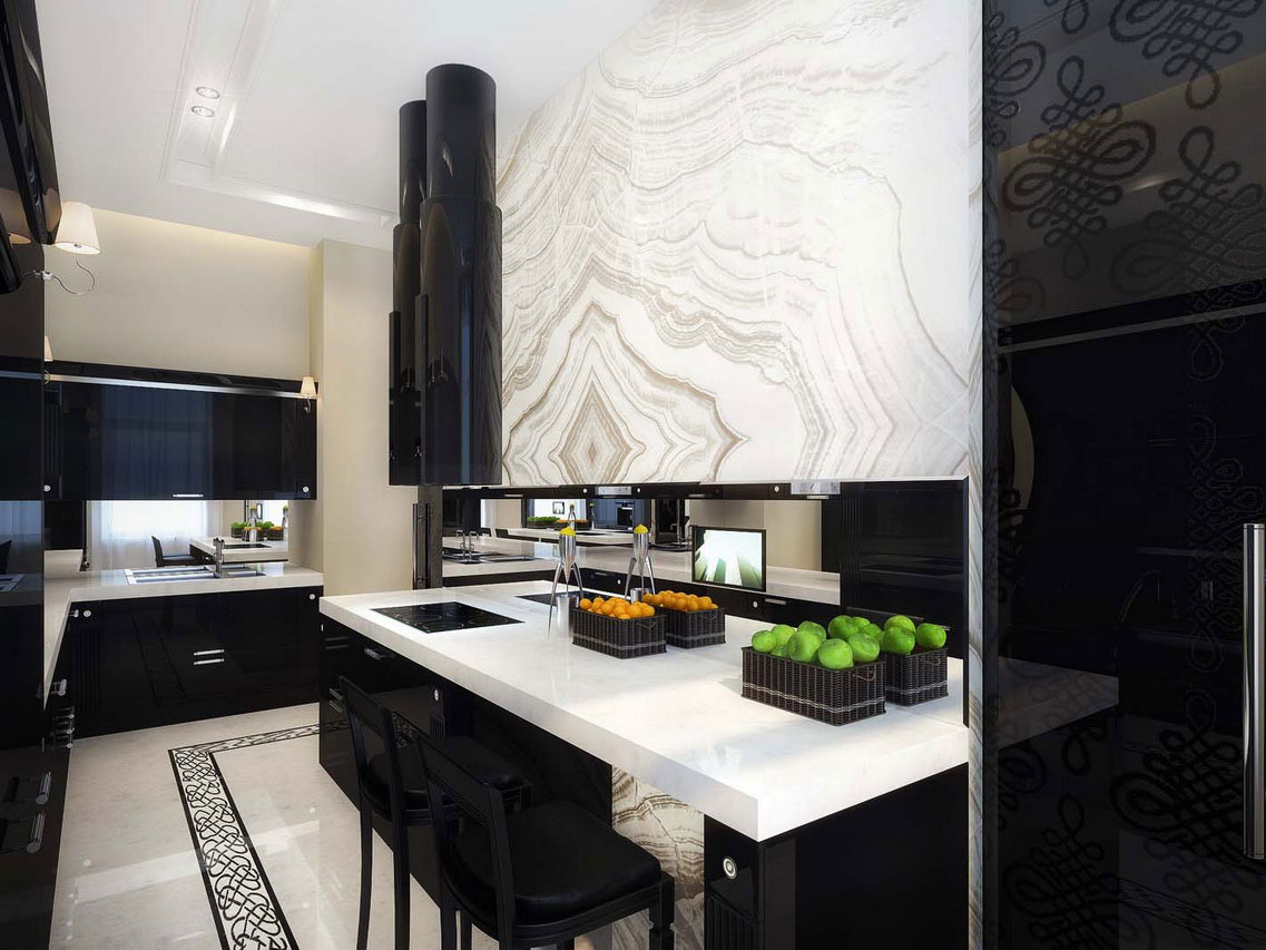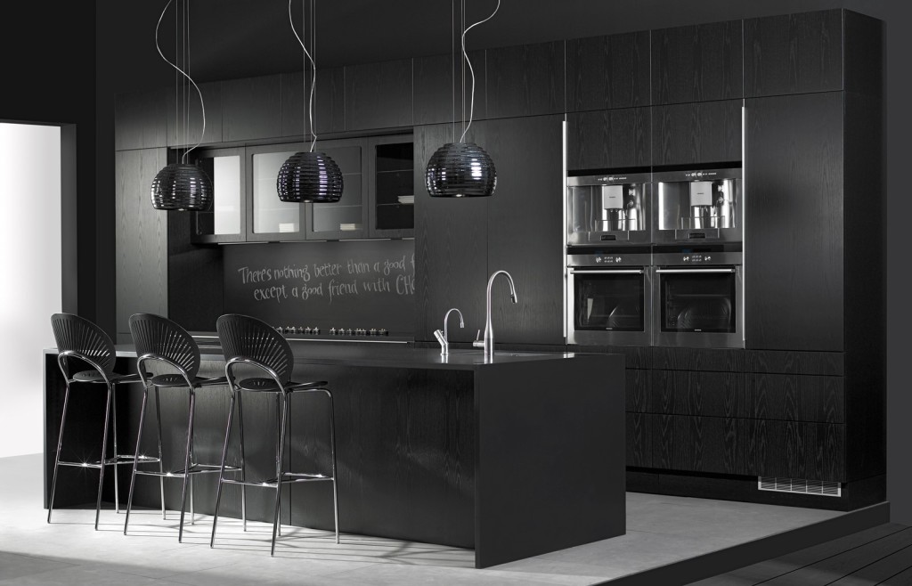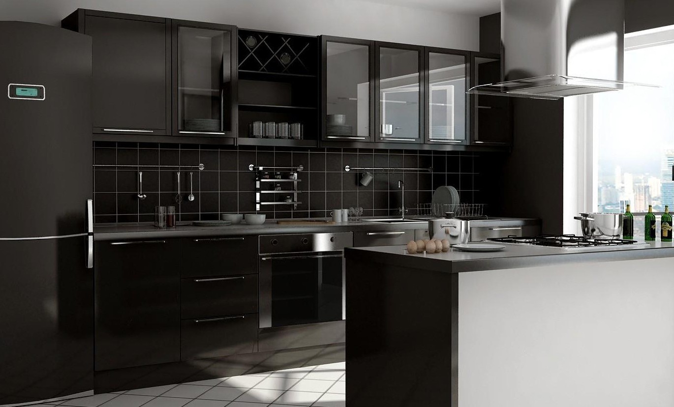 Black kitchen is extravagant and elegant. But you should be aware that choosing black color also for an apron, you can get oppressive space, if some conditions are not met.