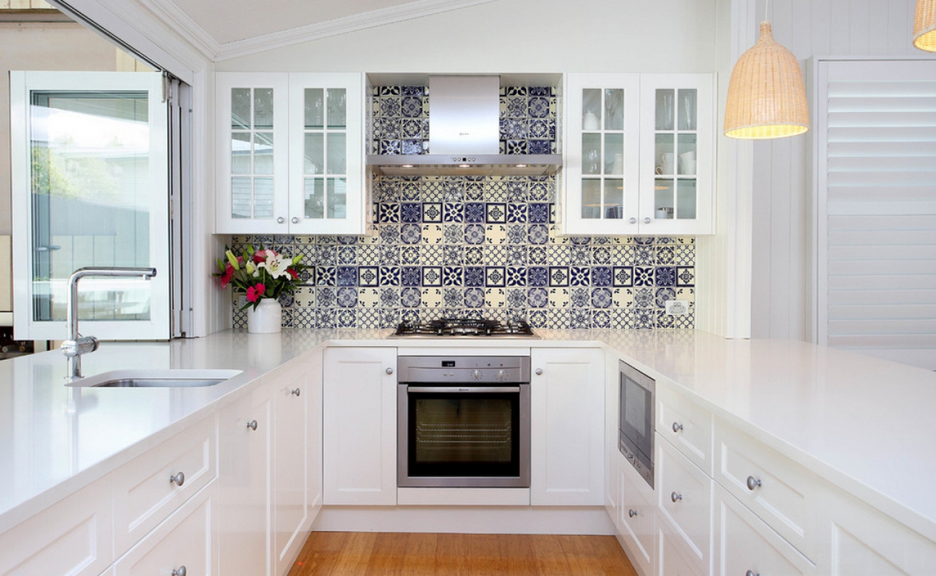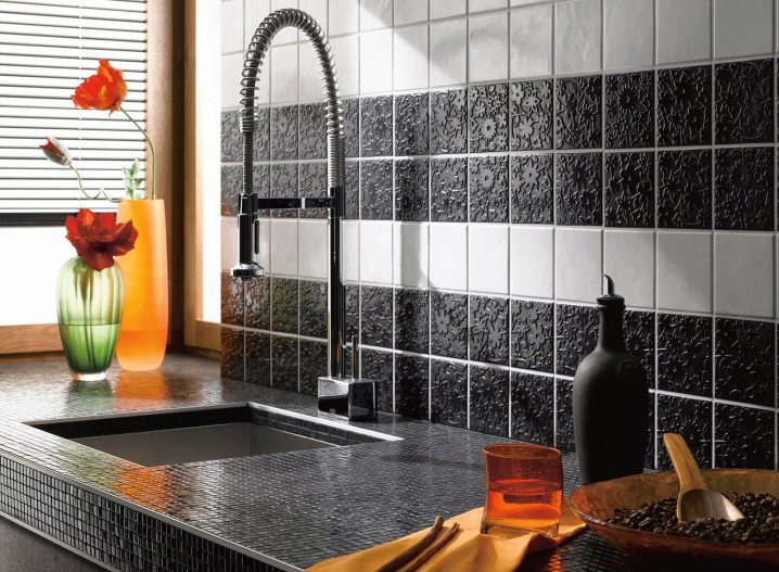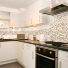 The apron from a tile already entered history of design of kitchens. Indeed, ceramic tiles have been used for a long time and continue to be used as protection of the kitchen area from dirt and moisture. Despite the fact that there is a lot of new materials for kitchen aprons, this option continues to occupy a leading position. Ceramics is a special material that does not absorb moisture and repels various types of dirt well.