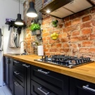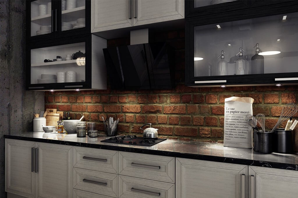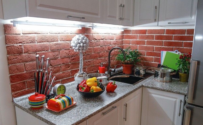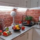 Artificial or natural stone can be used to finish the stone apron. And in the first and in the second case, the options for kitchen aprons are completely different. Very popular models in the form of bricks. Brickwork is considered one of the most reliable due to the absence of even the slightest bit shaded between the stones.