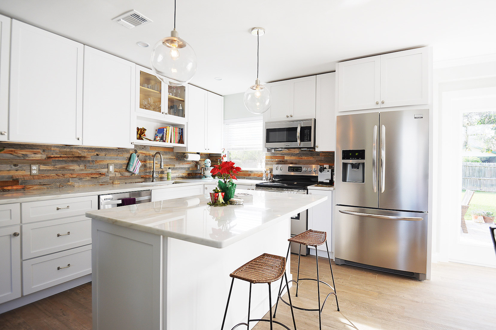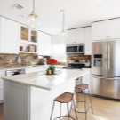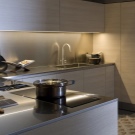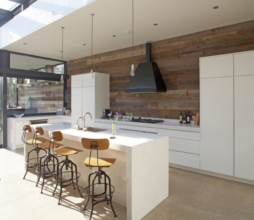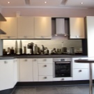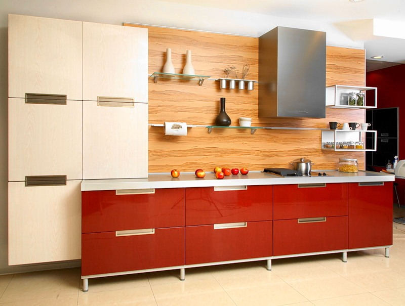 Laminate is widely used in the arrangement of floors. But this material also found its use when installing a kitchen apron. Laminated boards can imitate wood, stone or ceramics. For the kitchen, it is worth taking a waterproof and heat-resistant laminate that will withstand an aggressive attack of water and fat. For mounting, liquid nails are used, which will firmly fix the boards on a vertical surface.
