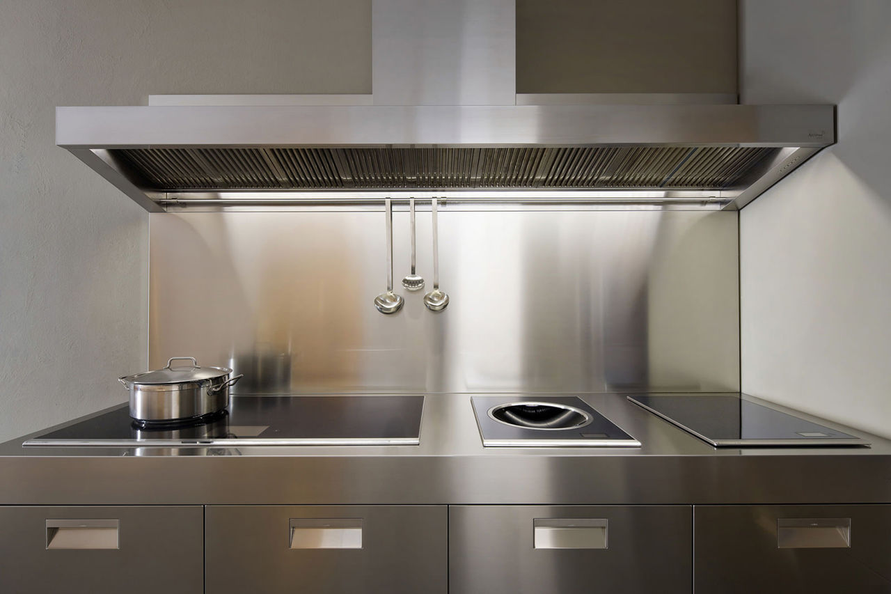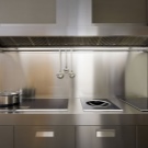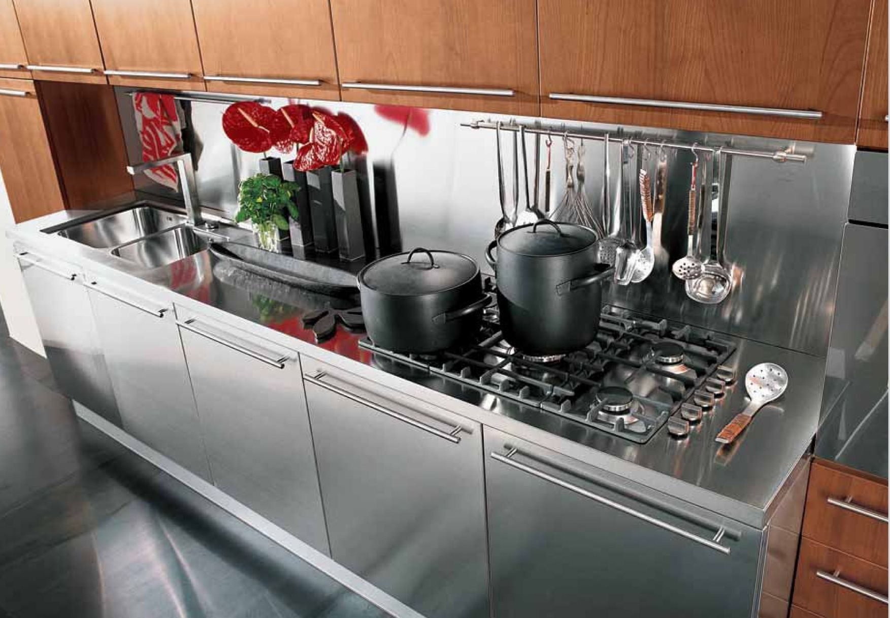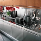 Kitchen apron made of metal materials is best suited for professional premises. But it is most often mounted in ordinary home kitchens. For example, galvanized steel has a lot of advantages, so it is readily used for the installation of a protective surface. The metal apron is not afraid of either moisture, or fire, or bacteria; it is easily cleaned and processed with disinfectants.