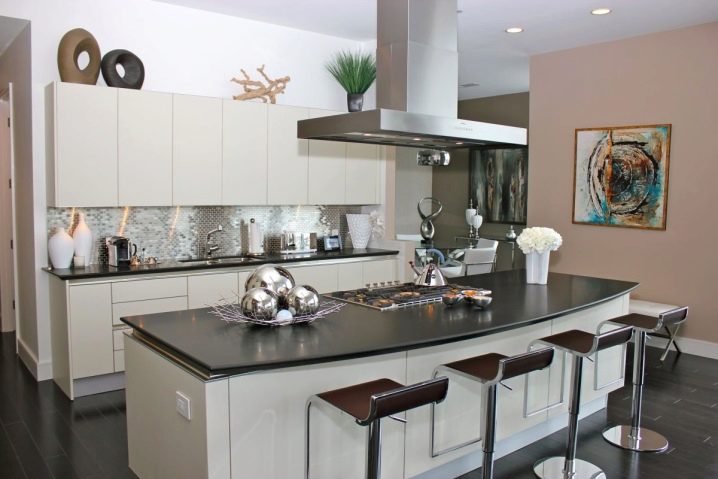 Among the variety of shapes and colors, you can easily choose the material that will be perfectly combined with the overall interior of the kitchen. For the best tightness of the joints between the protective panel and the table top, metal edging and sealant treatment are used.