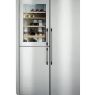 Inside the refrigerator there is a comfortable wine cabinet with wooden shelves, designed for 39 containers. The device does not need to be defrosted, as it has technology "No Frost". The owners can independently install and control the temperature in all zones and in the wine cabinet. The freezer is equipped with the "Frostmatic" mode, allowing you to quickly freeze delicate foods. With such freezing, they retain their properties and taste.
