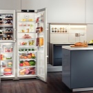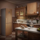 When choosing a freestanding refrigerator, customers should remember that it must “rhyme” with other appliances (for example, with a microwave or a hob), otherwise it will “fall out” of the overall stylistic picture. A delicate light appliance in a chocolate kitchen with light technique will play the role of an accent, which will be complemented by, say, beige stools or even such interior details as a vase or clock.