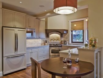 Beige is one of the basic colors in the interior, which provides it with excellent compatibility with other shades, its ability to balance various interiors in its contrast, saturation and color solutions.Making a bet on a bright palette in the design of the dining area, it is necessary to determine the parameters of the room, its illumination, because it directly affects which household appliances it is advisable to choose. You should approach this issue as seriously as possible.