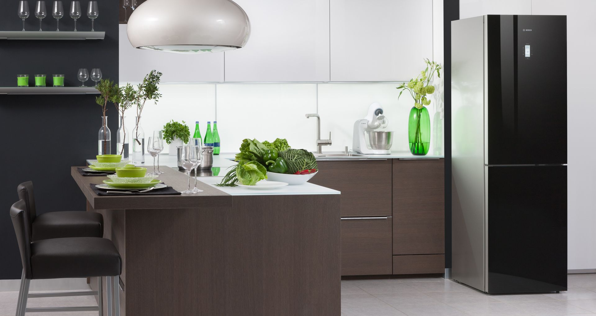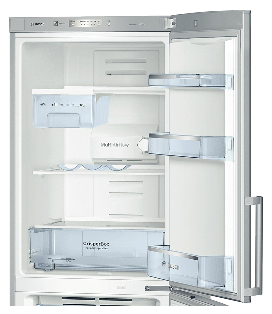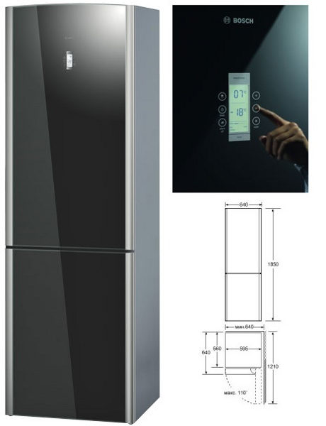 - low noise level. The Bosch refrigerator with a glass door will not only keep food safe for a long time, preserving all their nutritional and beneficial properties, but will also organically fit into any interior, attracting the eye and making family meals more refined.