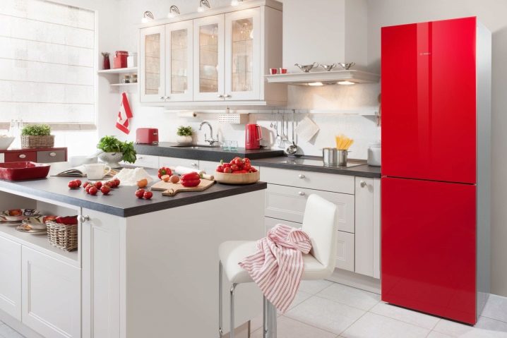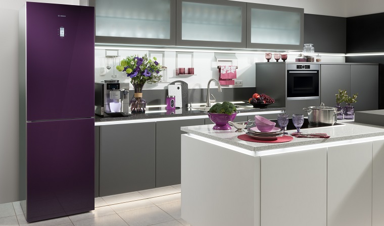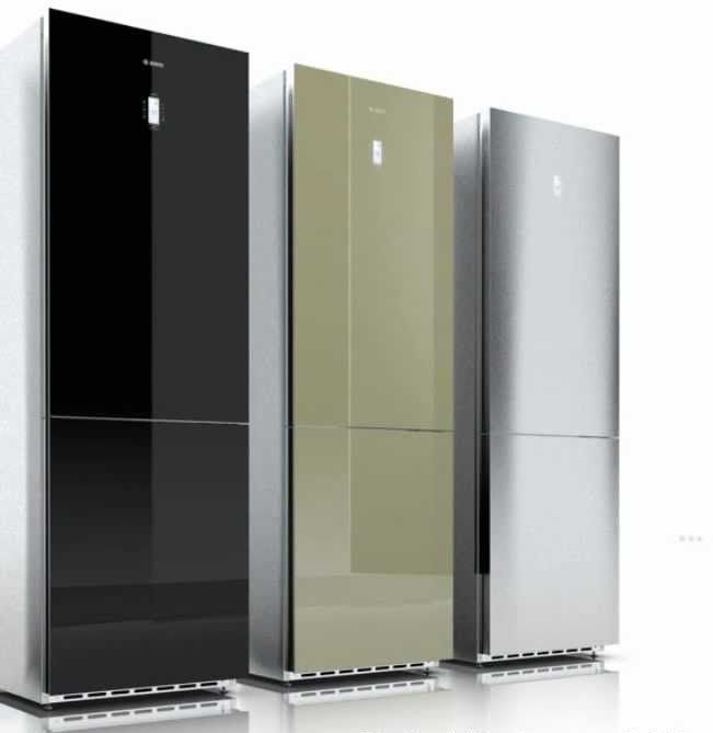 Bosch RefrigeratorsCrystal design"They have an elegant silver case with a large volume and a door, the front part of which is made of colored high-strength glass. The color solutions of this refrigeration equipment are represented by a wide range (from snow white to coal black, including the ultramodern color “quartz”), which is undoubtedly a plus for the original kitchen interior..